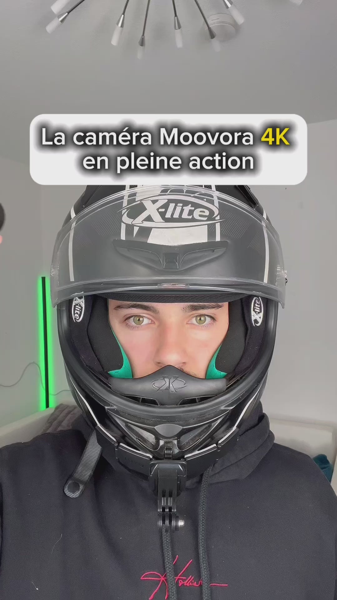 Support magnétique : Moovora est doté d'un système magnétique intégré qui permet de l'attacher facilement à des surfaces métalliques, tout comme la lanière présente dans les accessoires pour un enregistrement stable.